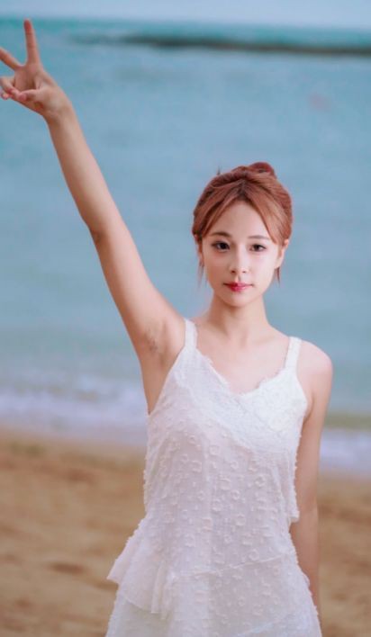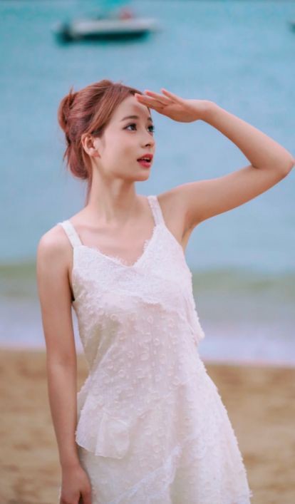 蕾蕾醒了没红色吊带裙