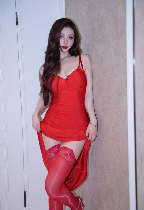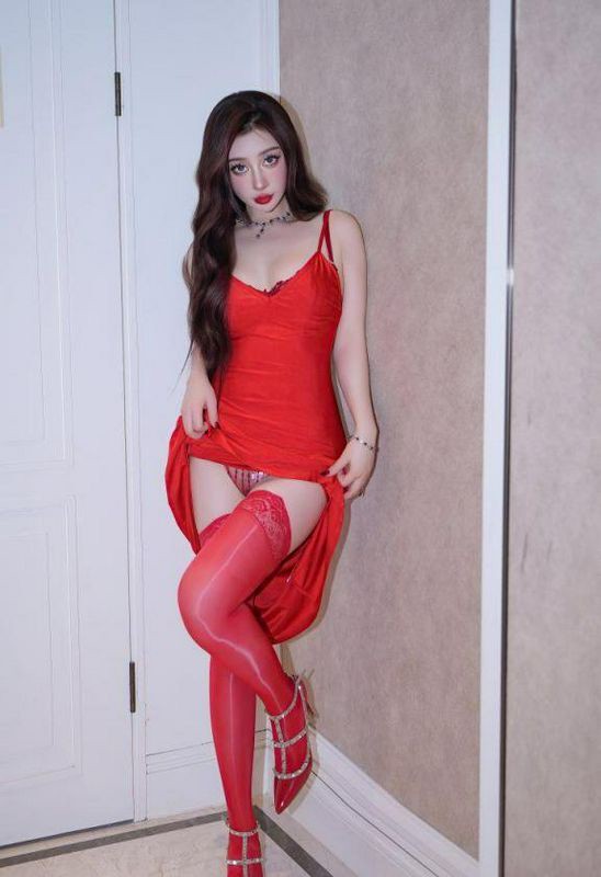 蕾蕾醒了没红色吊带裙